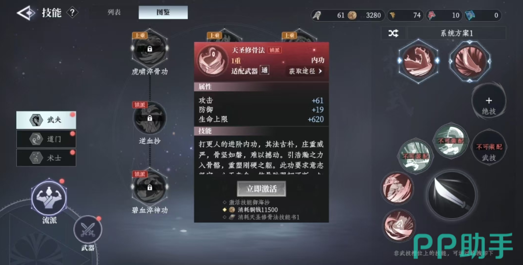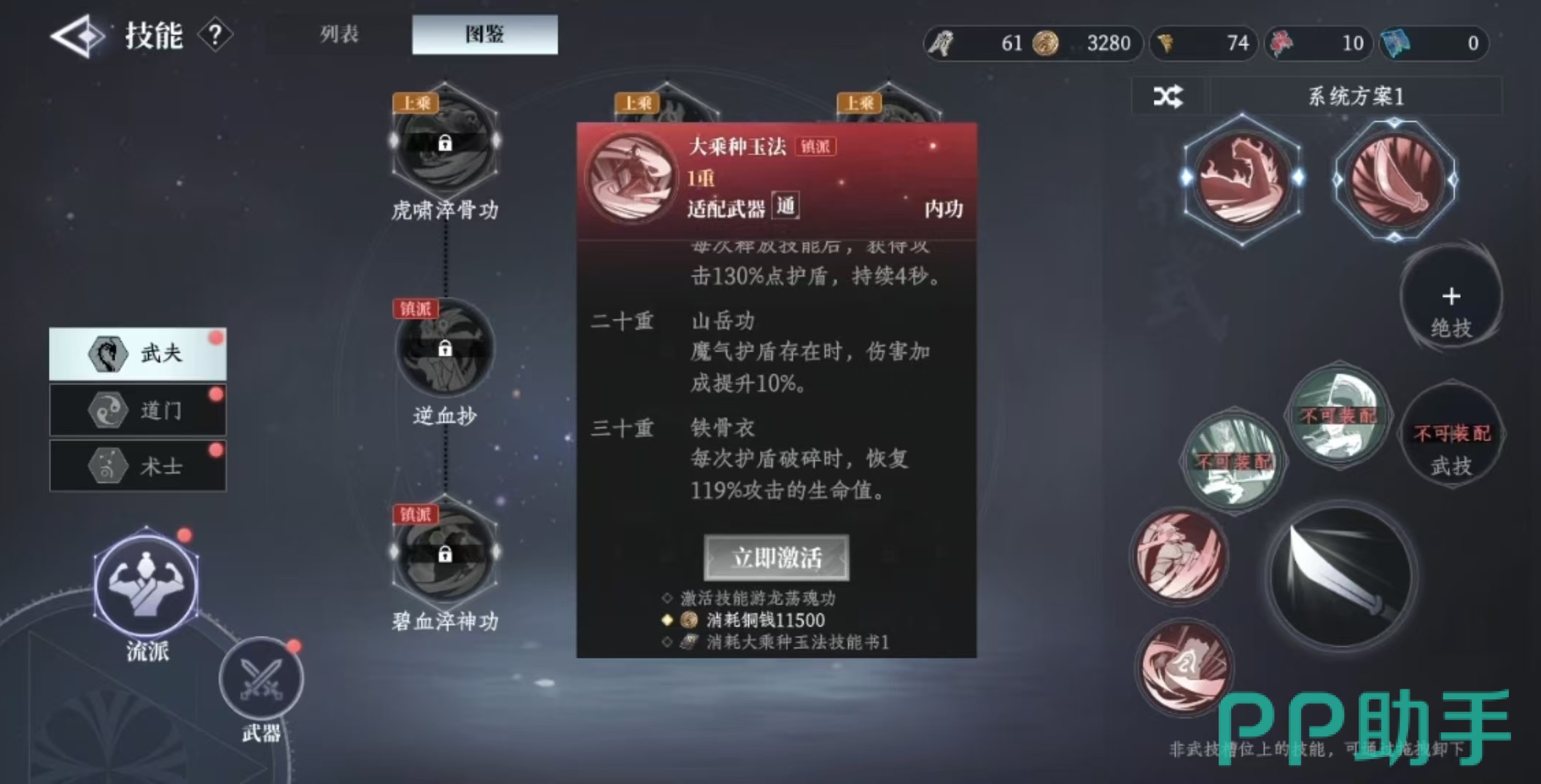 首先来看武夫流派,由于原著主角许七安的影响,许多玩家对这一职业情有独钟。游戏中武夫可修炼三种内功:天圣修骨法,能在每秒恢复大量生命值,并在遭遇致命伤害时使该次伤害无效;碧血淬神功,提供一次免死机会,且气血越低,所获得的伤害减免和输出加成越高;大乘种玉法,则是在每次释放技能后生成高额护盾,护盾存在期间提升伤害,破裂后还可回复生命值。整体而言,武夫拥有极强的生存与持续作战能力,非常适合新手入门使用。