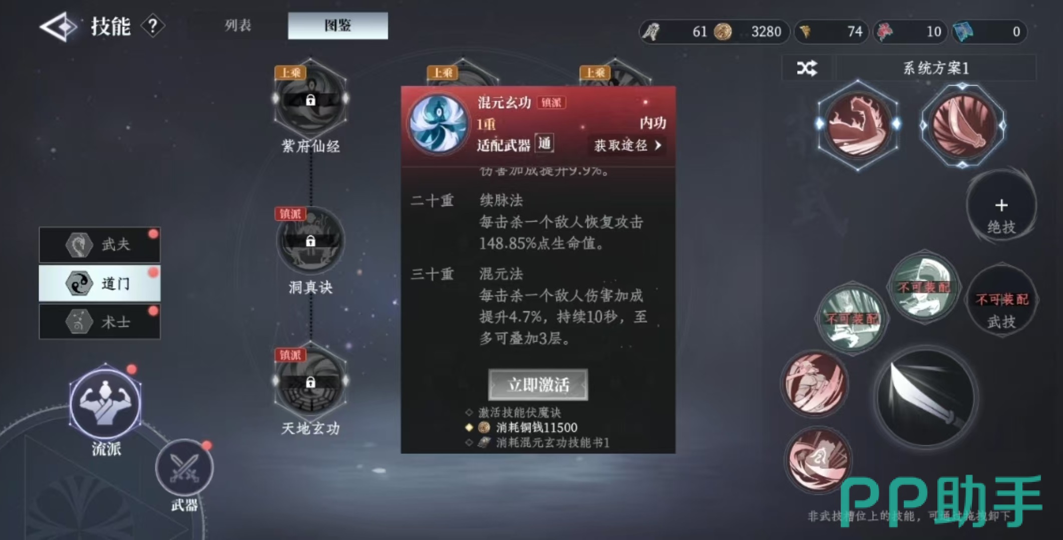 道门流派以元神修炼为核心,通过参悟天地法则来调动自然之力,擅长借助外物增强自身。相较于其他流派,道门的技能体系更为全面,涵盖攻击、防御、治疗、控制及辅助等多种功能,战术灵活性高。其代表性功法包括天地玄功,可在施法时概率恢复生命值,并随技能释放次数叠加伤害增益;混元玄功则在击杀敌人后恢复生命并叠加伤害,适合清剿大量小怪,在持久战中越打越强;上清仙经则设定为若角色在战斗中短时间内未受到攻击,即可获得伤害加成与暴击率提升,强调站位与节奏把控。
