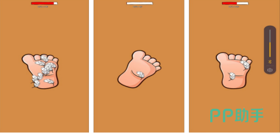 游戏中,每当用手指滑动或点击屏幕对大脚板进行搔痒时,角色会因难以忍受而剧烈晃动。玩法非常直观:在限定时间内尽可能多地触碰屏幕,统计你完成的挠痒次数。初始关卡可能只提供一根羽毛作为工具,但随着进度推进,将解锁更多羽毛图案同时出现在屏幕上,每一次点击都会引发强烈的痒感反馈,增强沉浸式体验。
