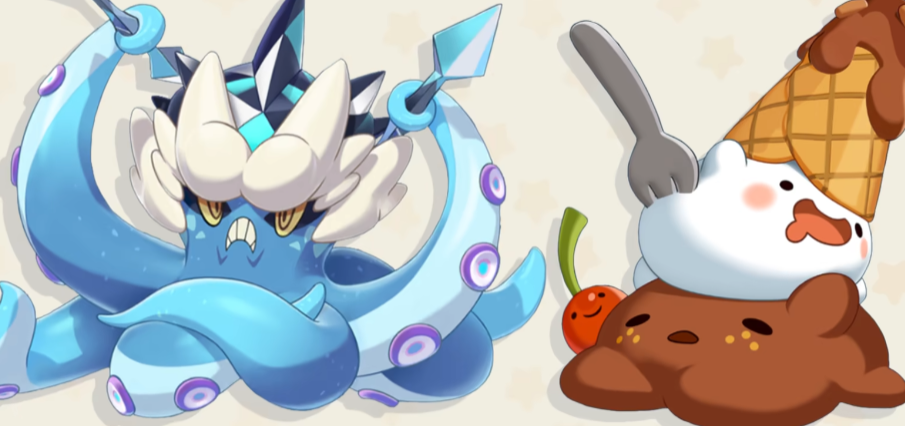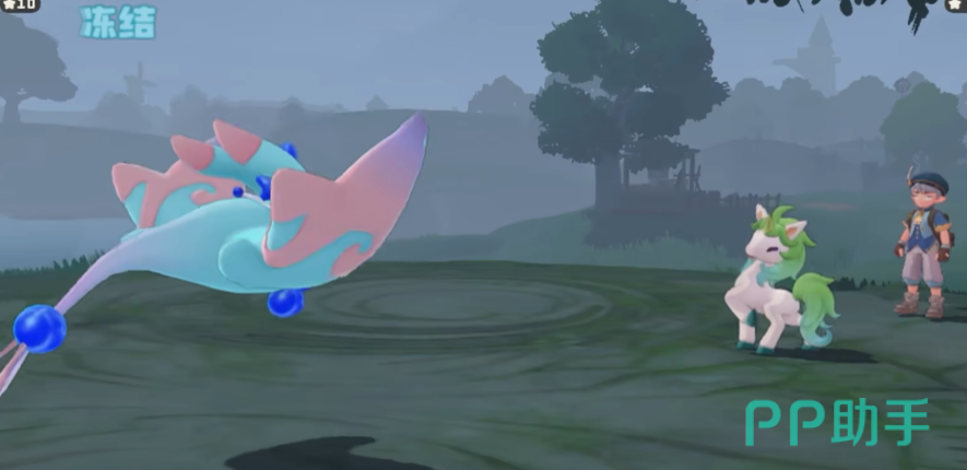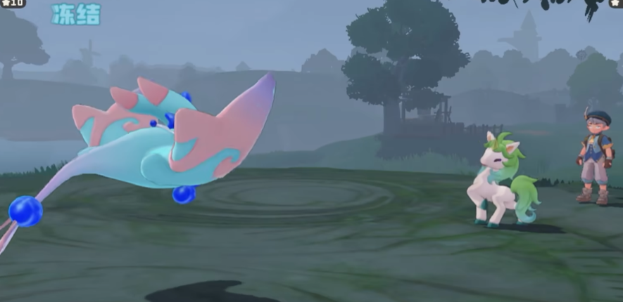 属于冰系进阶玩法,核心为持续叠加冻结与能耗。起手由圣代甜甜释放霜降,雪灵接续施压并提升敌方能量消耗,随后切入小独角兽,借助迅捷特性再次触发冻结。由于冻结附带斩杀判定,迫使对手频繁换宠,反而陷入更深控制循环。最后由雪影娃娃收尾,其特性可在每层冻结基础上追加能耗,彻底瘫痪敌方行动能力。