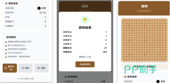 黑白两种不同的颜色棋子,两位玩家各选择一种颜色的棋子,通过轮流走子的方式正确放置自己的棋子,在横竖线交叉的点,直接点击即可成功放置,虽然整体的要求特别简单,发挥自己的策略,尽可能让自己的棋子,将对方的棋子团团包围,同时捕获了对方的棋子之后,让自己的地盘面积越来越大,但是每走一步都必须深思熟虑,要做到步步为营。