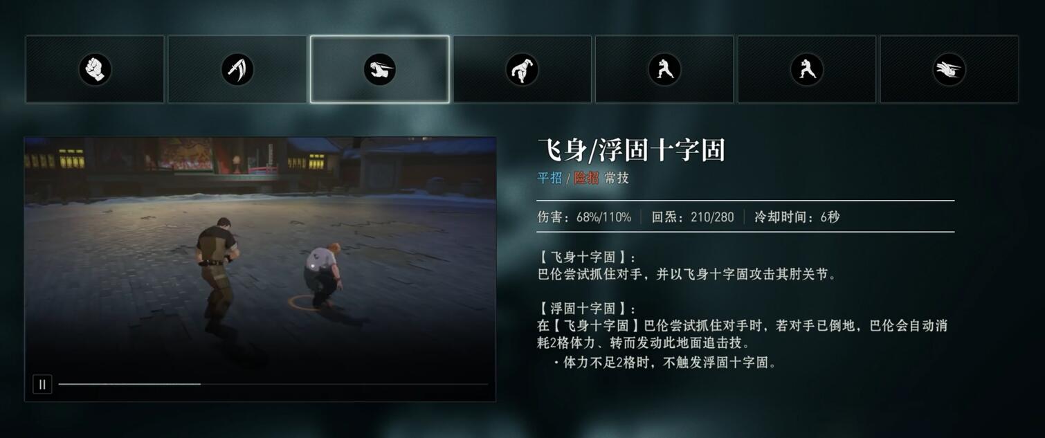 飞身十字固属于近身抓取类技能,成功命中后会对站立敌人施加空中十字固控场;若敌方已倒地,则转为浮固十字固,进行地面追加锁技,后者伤害明显更高。该技能拥有210/280的回怒值,有助于快速积攒能量释放大招,但存在明显前摇动作,面对频繁跳跃的对手较难命中。最佳使用时机是在破势突击击倒敌人后的瞬间衔接,提升命中率。