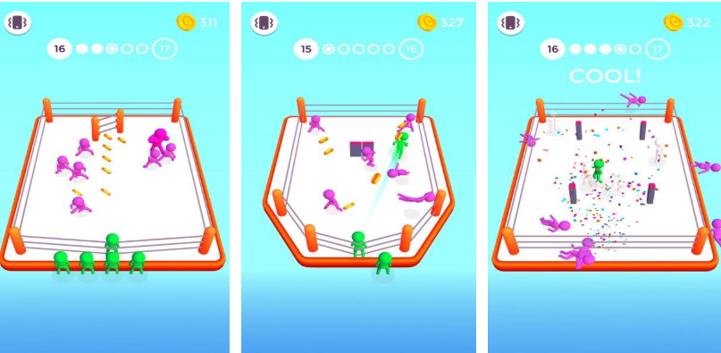 本作是款合家欢气氛的模拟摔跤打擂台的免费游戏,轻松休闲的格斗摔跤理念令不少格斗爱好者心驰神,擂台赛画面生动也有着专业的普通话解说,你将操控自己的摔跤手尝试在擂台上进行公平PK,将对手甩出擂台即可将其淘汰,简单好玩的游戏设定跟快速游戏节奏提供的快感十足。