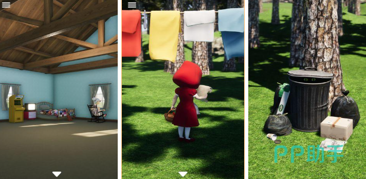 坦率的小红帽和爱说谎的狼中小红帽直率坦诚,狼却习惯用谎言掩盖意图,这种性格反差贯穿整个剧情,游戏用章节式的方式推进故事,每一章都设置了不同的场景,可能是雾气弥漫的森林,也可能是外婆家温馨的木屋,每个场景里都藏着不少细节线索,木屋窗台上放着的半块面包、森林里挂在树枝上的破旧围巾,点击这些物品不仅能触发支线剧情,还能解锁角色过去的记忆碎片,慢慢拼凑出两人之间不为人知的过往。