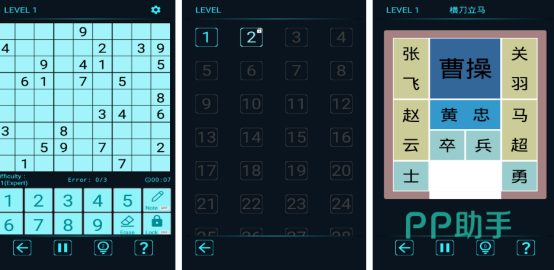 包含8个不同的逻辑谜题,非常考验你的智慧。有人们非常熟悉的数独模式,以数字推理为主,将1~9数字放到每个网格当中将网格全部填满,每行每列不能重复就能成功通过关卡。除了数独之外,还有华容道等其他特色智力挑战。