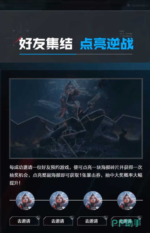 逆战未来预约奖励已经在上面分享出来了,除了预约奖励之外,还可以邀请其他的战友,这样也能获得角色皮肤或者是其他的高级礼包,可以叫上自己喜欢枪战对抗的玩家一起预约,这样上线之后就可以组队战斗,再次开启一场刺激的对抗。