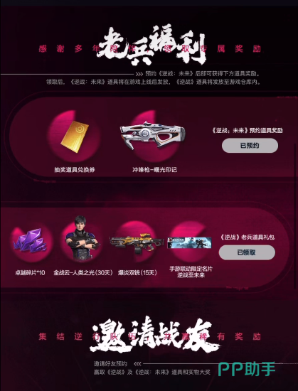 现在游戏一般在上线之前都会先设定预约环节,通过预约能展现出玩家对这个游戏的热情,也能提前锁定这个游戏,接下来要跟大家带来逆战未来预约奖励,通过预约,玩家可以在上线之后获得一些比较基础的道具,能借助这些道具更加快速的完成各项挑战。