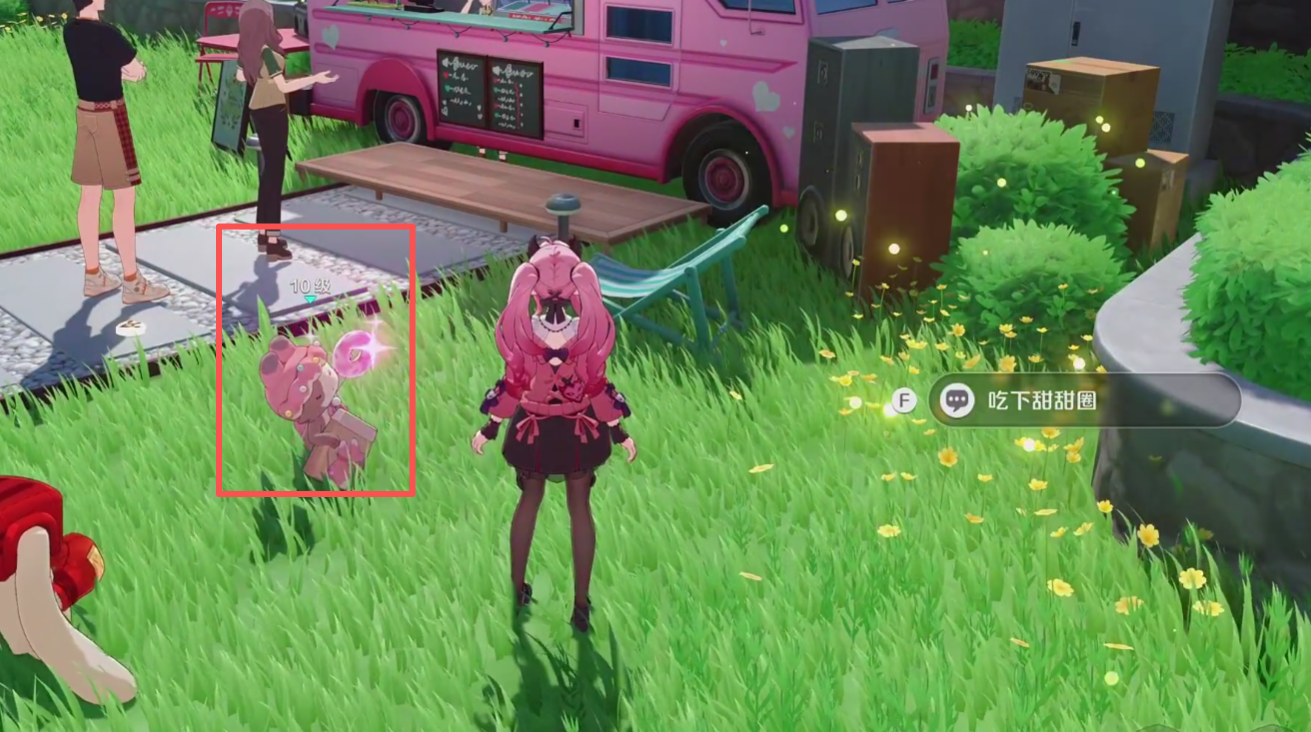 玩家可以在大世界当中和抹娜滋交互,吃下甜甜圈,亦或是在大世界解谜探索期间,使用甜苦圈圈这一技能,来完成解密项目,获取基础大世界奖励。