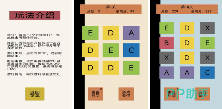点点方块特别适合打发时间,只要点相邻的同色方块就能消除,方块颜色鲜艳,红的、蓝的、黄的、绿的,消除的时候会有小粒子特效,玩的时候要注意,至少两个相同颜色的方块挨在一起才能消除,要是能连更多同色方块一起消得分会更高,消除完上面的方块会往下掉,有时候掉下来的方块又能组成新的同色组合,触发连锁消除,连锁次数越多分数涨得越快。