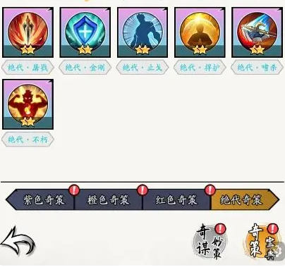 要想进一步的强化输出,可以选择长驱、增伐,这就是一个合理的组合,千万不要错过,可以有效强化追击的特性,还可以让伤害更上一个档次。另外还有针对性的奇策推荐。如果对面有王昭君,那么就带一个孙悟空奇策就可以有效破掉王昭君的无敌盾。还可以迅速的提升暴击率或者是爆伤,在打高防目标时,那不如就选择秦始皇奇策。还是很好用的,可以无视防御,可以造成碾压的伤害。不过现在奇策的品质还并不是很完善,大家也并不需要过于的追求,可以选择用橙色加上红色暂时过渡使用。