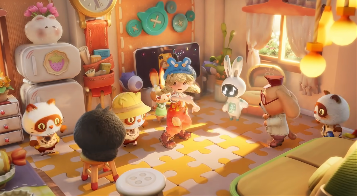 游戏里的种田钓鱼、捉虫这些基础玩法是游戏的基础,游戏还提供了装修换装等个性化玩法,甚至能跨星球串门、开派对。而且玩家和NPC的星球被区分开了,NPC的星球玩家可以体验一些单机小游戏,玩家的星球就支持联机多人的操作。