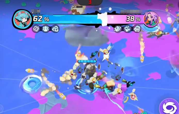 月相计划设定了一个非常独特的卡通场景,在这里不只有常规的卡通角色,还有一些动物变化而成的角色,成员们都可以加入到游戏里,选择自己喜欢的角色武器,并且选择一个自己喜欢的颜色,这样进入到挑战之后,就可以不断用武器攻击场景里出现的这些怪物,每次攻击布置可以通过击败怪物获得分数,玩家攻击之后的武器也会在场景上遗留下颜料,等倒计时结束之后,颜料最多的玩家才是获胜者,这种独特的涂色玩法,会让游戏变得更有趣味性,玩家都可以挑选独特的武器开启对抗。