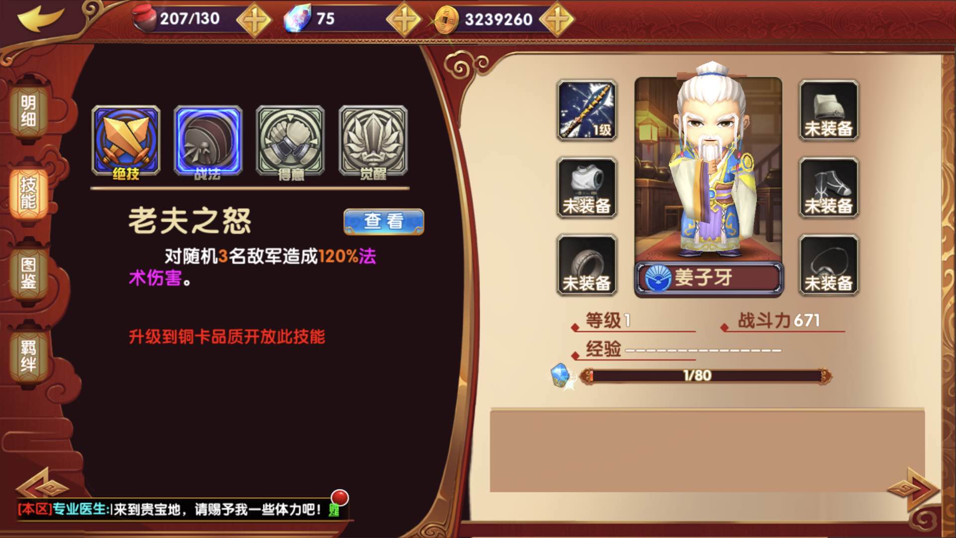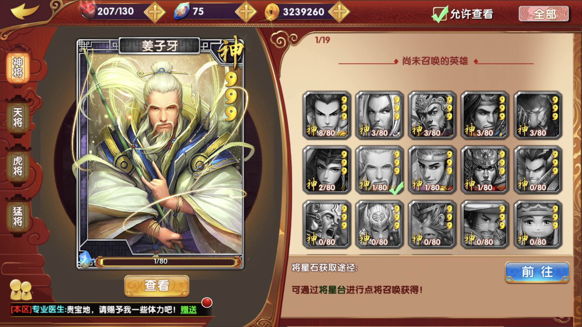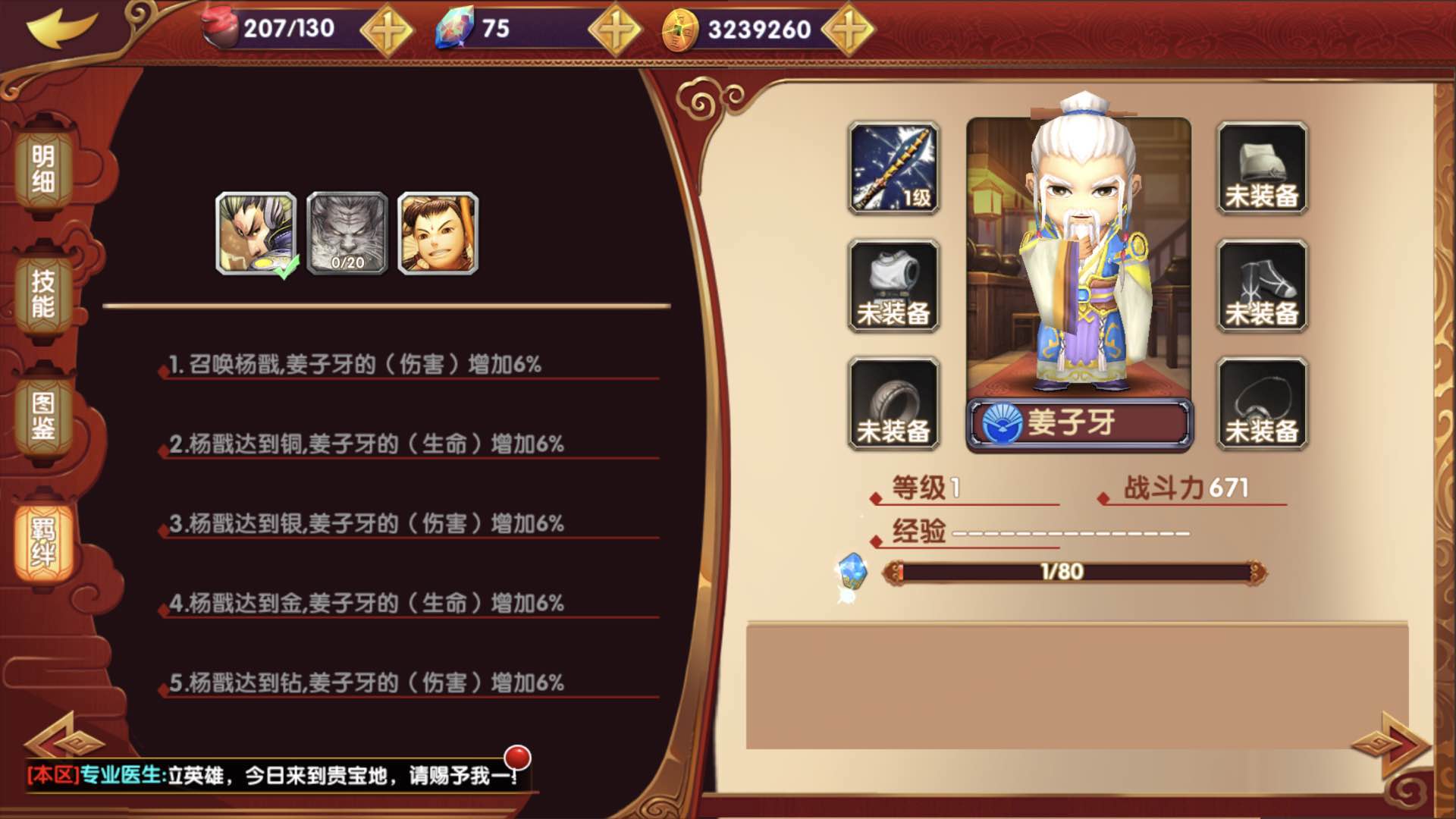 姜子牙的羁绊:杨戬和黄飞虎,杨戬非常好办,前面充值6元就可以获得这个卡牌,黄飞虎也仅仅是一张虎级卡牌,在各种日常刷卡的地方都能获得碎片。
