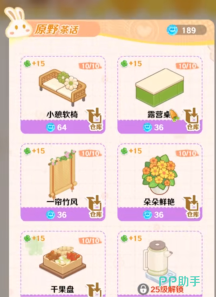在游戏中都是由尾尾木制作而成,因此如果想轻松拥有的话,那么就需要收集大量的材料了。游戏会定期推送出各种小活动,比如有冲榜之星或者是各种小游戏等等。那么积极加入了这些游戏之后即可收集大量的材料,比如头巾或者灶台,这些材料对接下来的家具打造是有很大的帮助也是必不可少的,因此多参与各种活动之后就会让自己手中的材料越来越多。