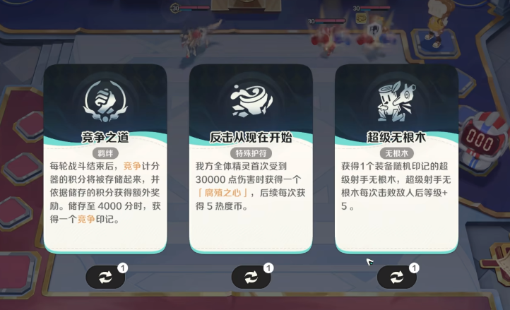 在挑战过程中,除了基础的精灵角色之外,系统还会随机给出相应的技能让玩家选择使用,借助这些技能可以带来额外的战斗力加成,也有的技能可以让玩家获得更多的伤害,每次对战开始之前基本上都会出现三个技能,想让大海龟有更强的战斗力,玩家就可以在游戏里多去挑战,如果出现了超级无根木这一项选项,那玩家就可以直接选择无根木一同上场对战,无根木会在后方进行远距离的射击攻击,每次攻击之后自身的等级还会增加,这样在后续的战斗过程中,会有更强的能力抗衡对手。