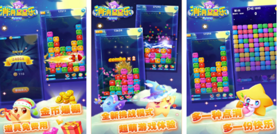 经典消星星的升级版本,关卡数量超级庞大,提供较为丰富的辅助功能与特色道具,适合休闲娱乐,多个版本自由选择,通过点击屏幕将相同颜色星星连接在一起,就能够快速消除并进入之后关卡,游戏整体简单轻松又治愈,但想要获得极高的分数,需要消耗较多的脑细胞,这简直就是开动脑筋打发时间的优质之选。