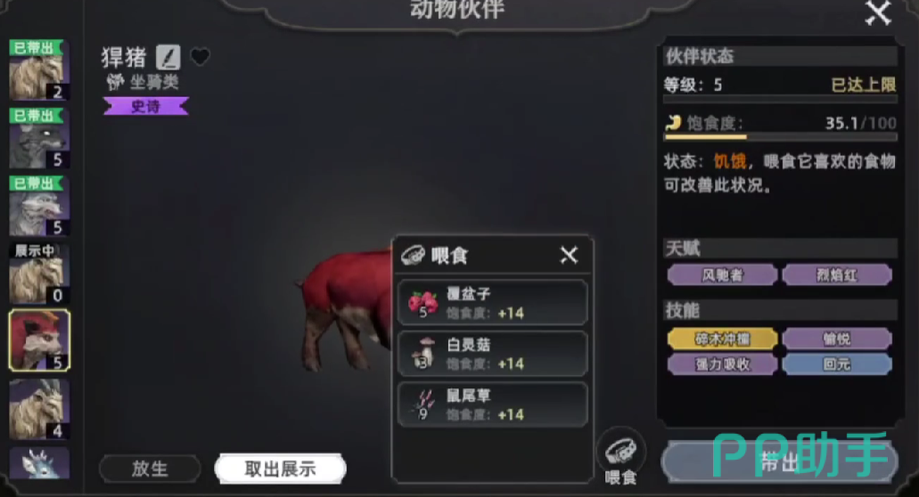 玩家在驯服野猪的时候也需要注意,有些野猪会变异,一旦变异之后,他的实力肯定会变得更加的强壮。另外玩家在骑野猪的时候要装上鞍具。在技能方面的话,野猪其实具备冲撞技能跟战斗辅助技能,不过对于玩家来说骑着野猪去进行资源采集的时候,能够快速的获取矿石,因为它能够冲撞岩体,另外为了能够保证效率的时候,玩家在选择骑野猪时进行资源采集,也可以轮换作业,避免出现过度疲劳的状态。