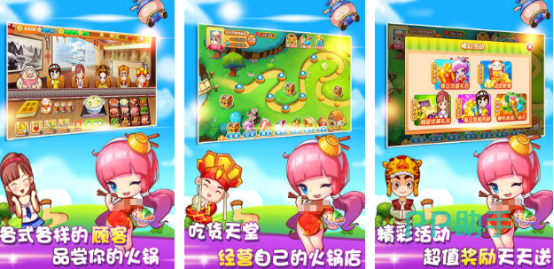 流行的独立作品扮演火锅店老板开发各种具有特色的火锅,将不同时采集合在一起,所设计的口味是有所差异的,喜欢的人群也完全不同。可任意接待不同类型的顾客,为了创作出全新新品,培养厨师与服务员,开办连锁店面逐渐扩张阵容。多种经营方式,任意挑选不同的经营玩法,给你带来不一样的欢乐,要凭借着足够的智慧来设定相应的营销策略。