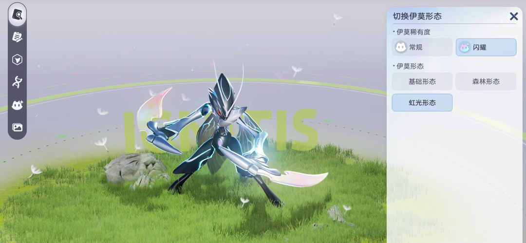 尽管淬刃螳螂已是进化后的形态,但它仍存在多种变体。图鉴中展示的是其标准形态,此外还可在森林地图发现森林形态的个体,而在虹光天气条件下,则有机会捕获具备特殊光效的虹光状态淬刃螳螂。该伊莫常见于地脉晶族·青石台以及迷雾森林区域,建议玩家在这些地点进行反复探索以提高遭遇概率。