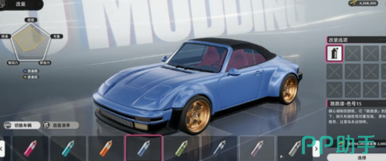 对于大多数玩家来说,外观定制是改装的核心环节之一。4S店提供了丰富的车身颜色选项,包括经典沉稳的黑色、活泼亮眼的粉色以及科技感十足的金属渐变色。玩家既可以选择整车喷涂,也能针对特定部位进行局部改色,实现更精细的设计效果。同时,涂鸦功能也十分关键,允许玩家在车门或其他区域添加个性化图案,例如卡通形象或专属标志,从而彰显独特风格。