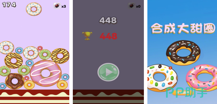 整体氛围充满甜蜜气息,各类甜品细节精致逼真。巧克力蛋糕展现流动夹心,奶油甜圈覆盖糖霜与碎粒。合成时伴随悦耳音效与温暖光效,玩法延续传统规则:两个小饼干合成糖果,两个糖果组成巧克力,最终目标是合成顶级的彩虹甜圈。