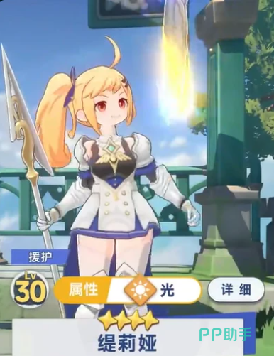 此外,缇莉娅也是光系阵容中的重要一员。她身着英伦风格服饰,手持长枪,整体气质自信而坚定。该角色不仅拥有出色的生存能力,具备高额生命值与护盾机制,还能在关键时刻为全队提供保护。其大招释放时不仅能提升自身防御,还可附加光属性伤害加成及暴击增益效果,进一步强化团队的整体作战能力。将她纳入阵容,等于为队伍增添了一道坚实的防线。