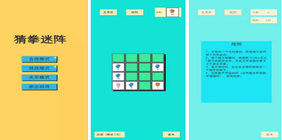将小时候经典的石头剪刀布融入其中,又加入与2048比较相似的虐心模式,通过滑动界面上的格子快速合成你想要的形状与数字,每次在滑动的时候都会随机刷出全新的格子界面,不可移动时,那么就会导致游戏结束。除了有合成模式,还有无尽玩法以及挑战模式,具体的规则与传统的石头剪刀布和2048相比比较复杂,充满挑战性。