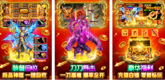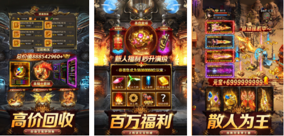 散人为王,百万福利等你选择,通过打怪获得的装备可高价回收,能够兑换丰厚的金币,游戏中也有自由交易模式,所有装备都支持自由交易,即便稀有度极高的特色武器也在这里流通。这款复古传奇游戏作为超级好玩的怀念1.86版本散人也能轻松爆神装,即便你是平民玩家,也能轻松追上土豪。
