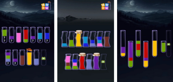 要比井字其还烧脑的逻辑推理手游,只要根据相应的规则排列顺序,就可以成功通关,看似比较容易很简单,但真正参与会发现具体的规则较多,要根据每个试管当中液体的颜色和具体的分类情况来完成排列,迅速完成所有试管颜色相应整理。游戏关卡从易到难,不断攀升很多特殊关卡难度全方位升级,另外也有日常活动趣味建造等多样化特色功能。