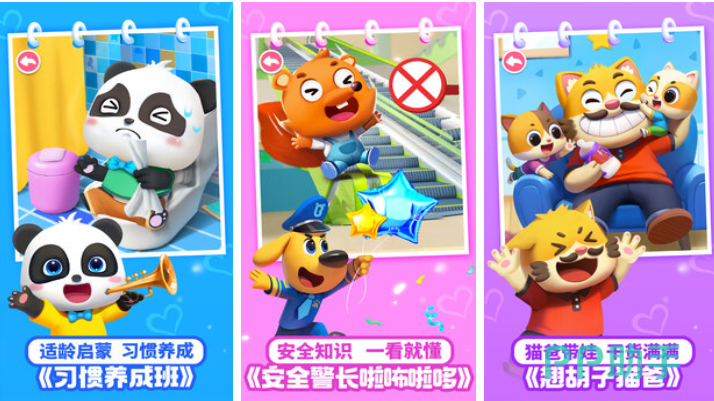 这是一款面向学龄前儿童打造的生活习惯启蒙游戏,融合儿歌与互动场景,帮助孩子掌握基本安全常识和日常知识。游戏中设有多个主题情境,操作简单易上手,卡通风格的动物角色形象生动,具有良好的亲和力,背景音乐采用朗朗上口的儿歌旋律,营造出轻松愉快的学习氛围。
