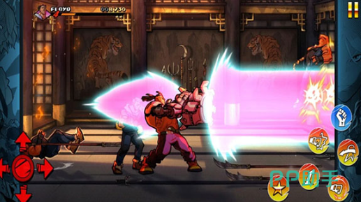 《暴力街区2》采用硬派漫画视觉风格,使每场战斗如同动作电影般激烈。释放必杀技时会切入特写镜头,增强战斗表现力。操作设计为点拖结合模式,点击完成普通攻击,拖动实现灵活走位,便于闪避敌人围攻,适合新手快速上手的同时保留操作深度。