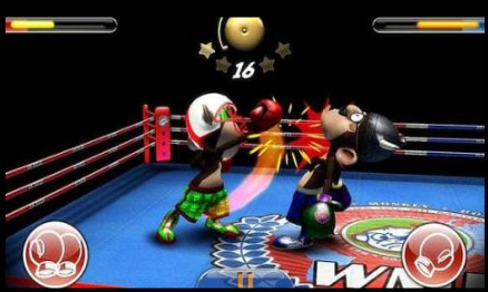 这款游戏延续了经典搞笑的猴子拳手设定,并加入了联机对战功能,支持通过WiFi连接与好友远程对决,无需共用同一块屏幕抢操作位置。基础机制包含轻攻击、重攻击以及防御动作,战斗过程中会随机出现特殊图标,抓住时机触发可实现逆转局势。胜利后能提升等级,解锁新场地,同时还可以为猴子角色更换装备,增添个性化元素。