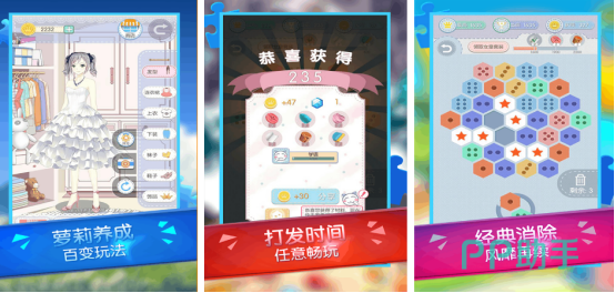这是一款融合换装与消除玩法的二次元风格手游,每通关一个消除关卡,就能收集到用于服装制作的材料。随着材料积累,可解锁更多个性化服饰设计机会。支持经典三消与六边形消除两种模式,灵活搭配各类布料,创造独特时装。同时包含萝莉养成元素,整体画风贴合年轻群体喜好。闯关挑战与限时设计活动交替进行,增强游戏趣味性和参与感。