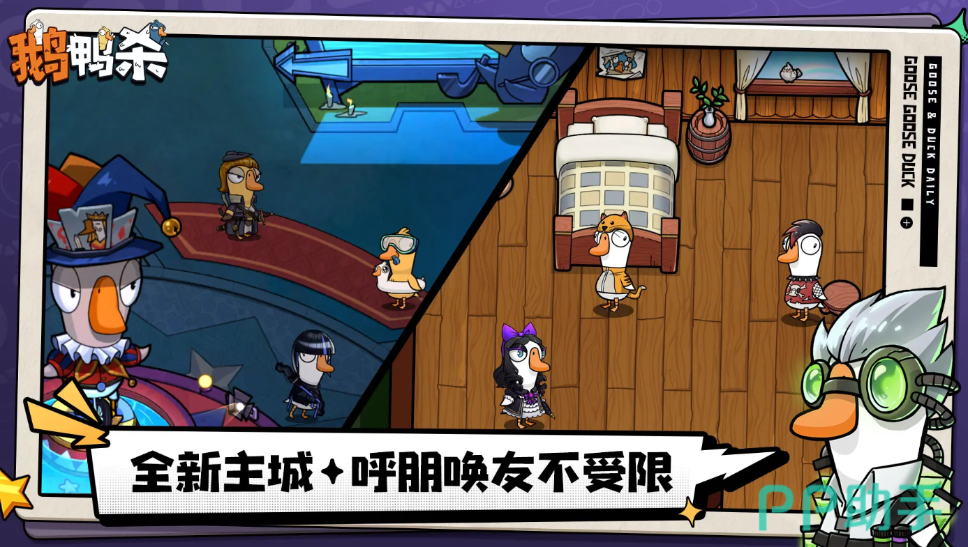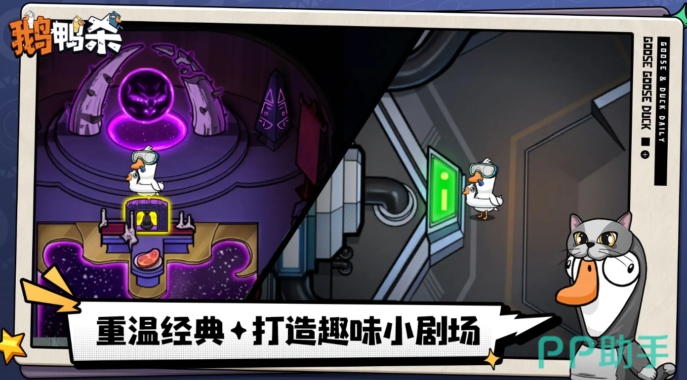 《鹅鸭杀》是一款经典的多人在线推理游戏,于游戏内,玩家将化身成为大鹅亦或鸭子,在太空飞船当中展开角逐,当然,游戏不仅设置了反面和正面角色,还设置了中立阵营的角色,大鹅阵营的玩家需要通过协作,寻找出潜藏在太空舱内的潜伏者,而鸭子阵营的角色,则需要通过暗杀,以及巧妙的伪装,制作大量的混乱,误导他人的思考。