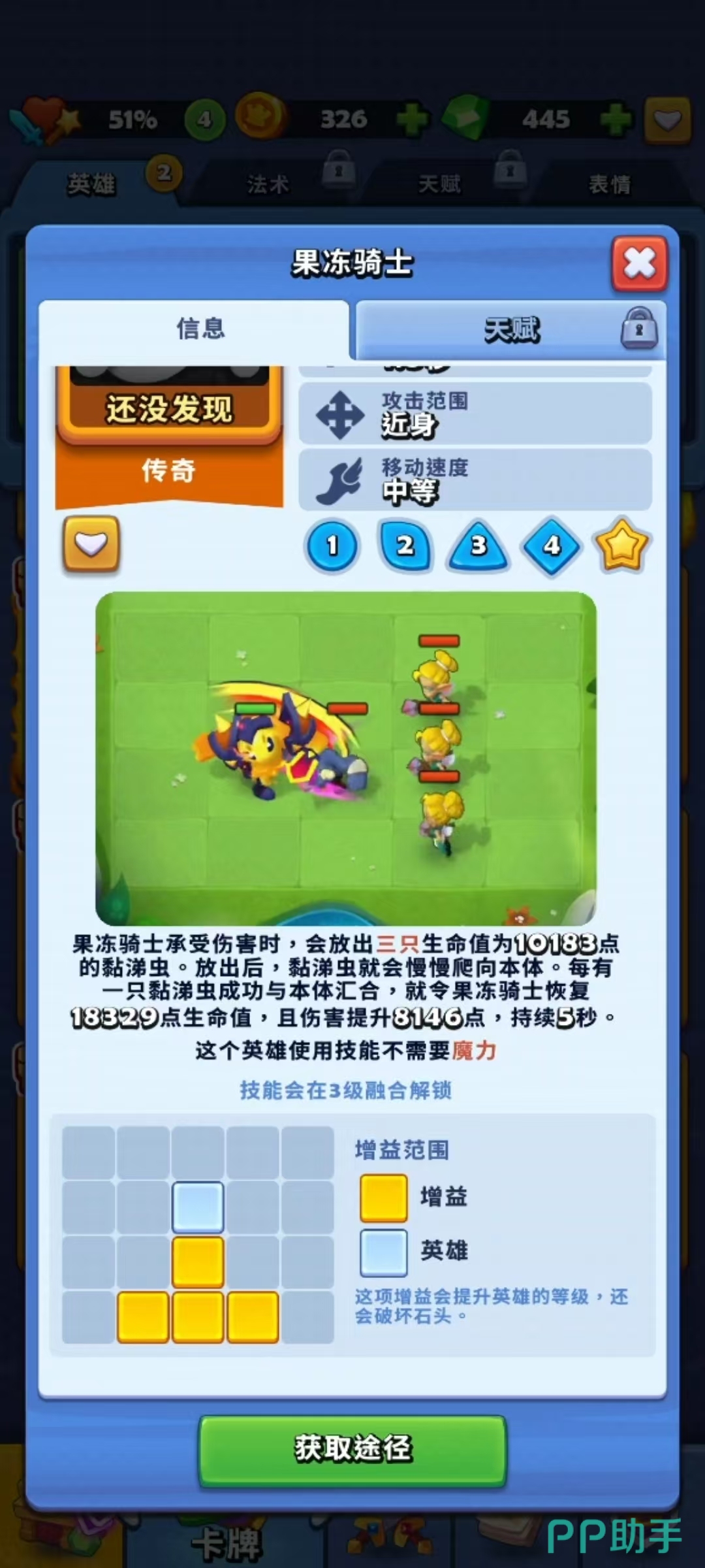第二位值得信赖的前排英雄是果冻骑士,他是持久战中的核心防御者。凭借被动自带的生命回复机制,果冻骑士能够在承受大量伤害的同时持续恢复血量,战斗时间越久,续航优势越明显,极大缓解了前排站不稳的问题。第三位推荐的是狮鹫,不仅拥有强大的突进能力,还能在开启技能后向敌阵后方跳跃,打乱对手布阵。若成功落在敌方主力输出身边,不仅能控制目标,还可降低周围敌人的伤害输出。此外,狮鹫具备免疫控制和减伤特性,显著提升了生存能力与战场干扰效率。