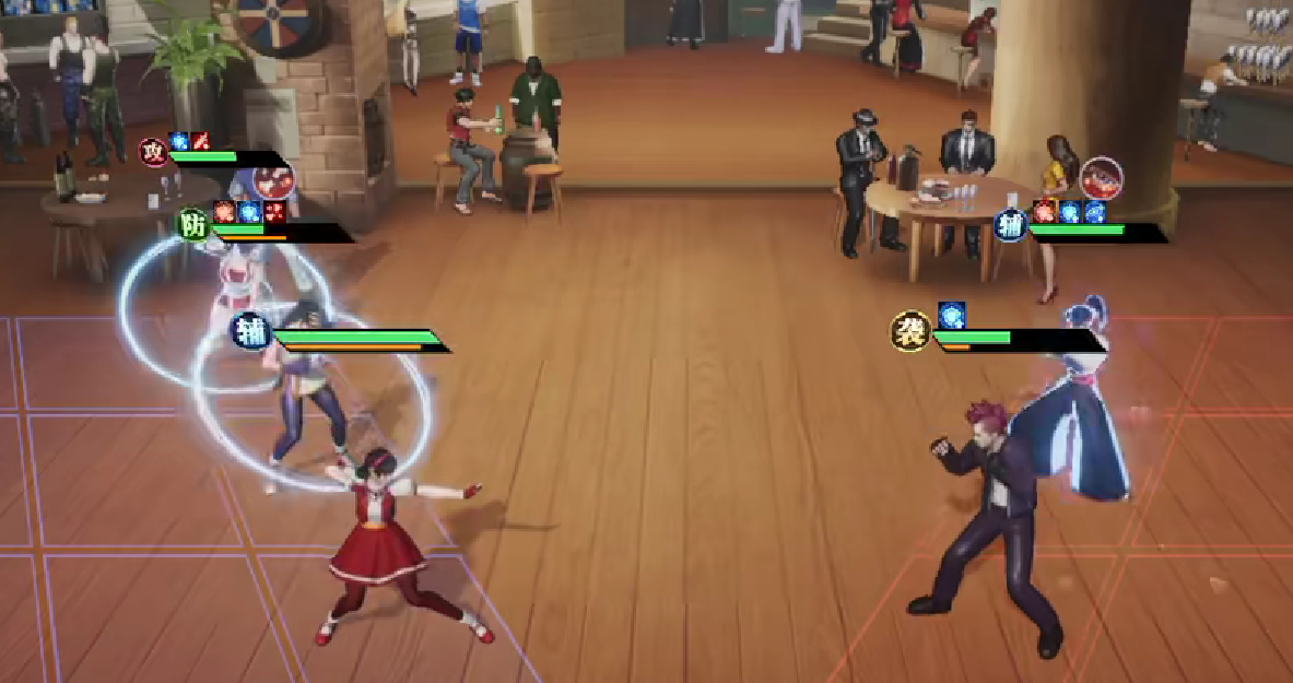首个阵容是羁绊属性阵容,玩家必须搭配坂崎琢磨,坂崎良、罗伯特,当坂崎良格挡成功时,会为罗伯特恢复一百的怒气,从而使得罗伯特能够获取再次释放绝技的能力。