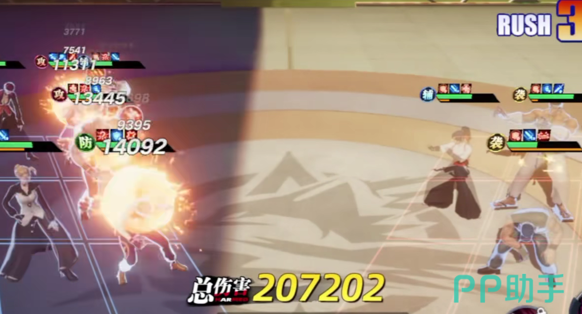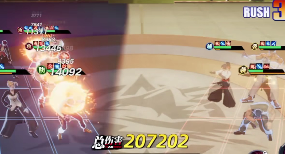 第二个连招是怒气技能进行多段敌方单位锁定,在回合结束时,再次追加一次额外伤害,直接压制敌方残血目标。