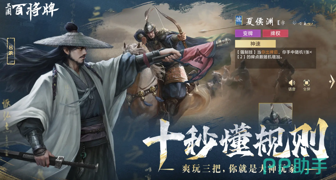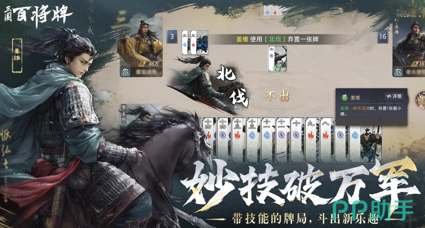 《三国:百将牌》是一款玩法非常新颖的非对称性竞技卡牌游戏,整体规则简单,同时每一局所需要消耗的时间都非常短暂,为了让玩家能够沉浸式的体验到三国战场,游戏将基础的卡牌对照模式融合进入到了武将技能内,两者相辅相成,只有玩家将所有的技能组合全部吃透,才能够获取胜利。