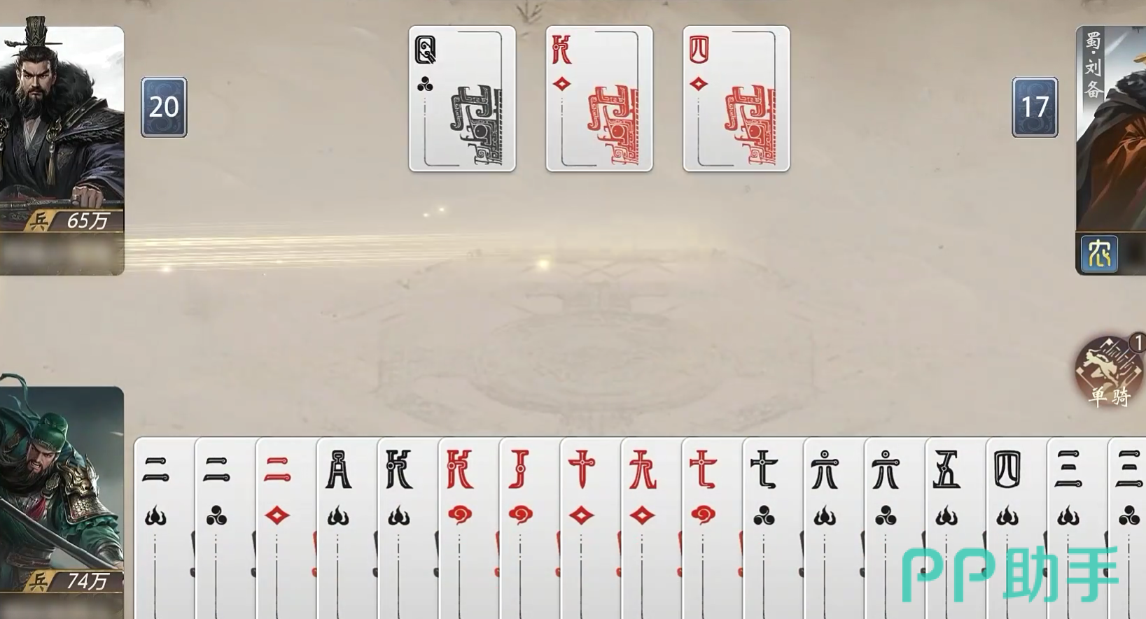 在战局内,玩家可以选择前期藏锋,降低对手的警惕性,从而使得对手快速的打出自身手牌,在最后一个回合内,玩家可以使用名将技能更改手牌,让自己翻盘获胜。