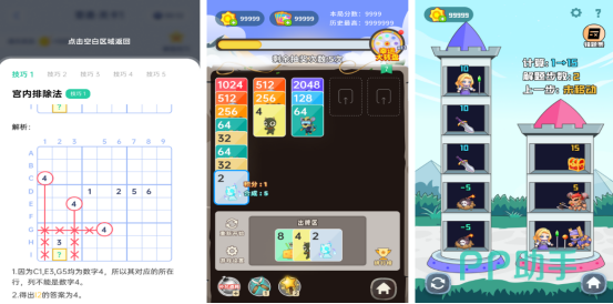 这款应用汇集多种经典数学玩法,寓教于乐。其中包含数独迷宫挑战:屏幕上显示多个九宫格,部分格子已填好数字,玩家需从下方1~9的数字中选择合适数值填入空白区域,确保每一行、每一列及每个小九宫格内均无重复数字。此外还有类似2048的抽卡合成模式,将相同数字卡片组合即可升级,锻炼逻辑思维与策略能力。