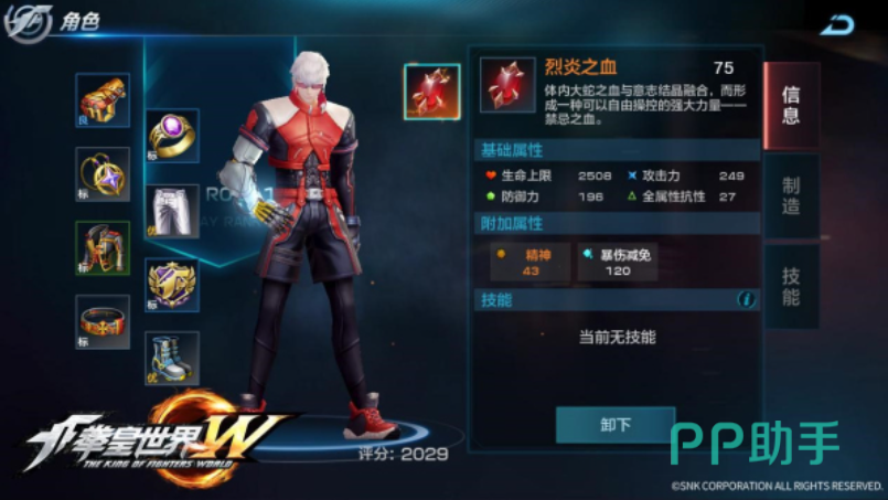 这款游戏可以说为拳皇宇宙打开了一个更为广阔的世界!残存的大蛇一族居然可以传承血脉了?玩家只要达到要求就可以感受大蛇血脉带来的狂暴魅力!开局随手选了一个角色,后续肠子悔青了也要耗费心力去培养?不存在的!全新升级的转职系统,让玩家可以不再迁就,拥有第二次选择开始的机会!95级剧情设计,让玩家享受格斗乐趣的同时,更能切身体会角色命运,随着剧情深入,玩家可以通过完成任务解开一个个谜题,解锁更多意想不到的结局!