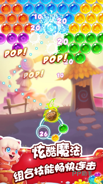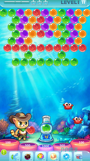 玩开心泡泡猫的时候,玩家能和喵星人一起玩泡泡射击,游戏里有不一样的道具,能帮玩家更顺利地通过关卡。像能加时间的沙漏和能大范围消除泡泡的芭蕉扇,这些道具都能用到。有些关卡里有很多骷髅炸弹,只要打到它们,就能大范围消除泡泡,要是想救出自己的小伙伴,就需要大家一直突破神秘城堡的各个关卡。