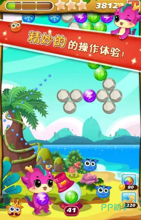 这是一款泡泡龙手机游戏,玩这款游戏能让人放松,它有一千多个关卡,每个关卡的布局和要完成的目标都不一样。有的关卡需要消除泡泡,把被困的小动物救出来,游戏里有一百多种特别的谜题,还加了积分系统,能提供不同类型的挑战。游戏的画面和泡泡爆炸的效果都很鲜艳,看起来很舒服,玩家只要好好规划怎么消除,就能打掉更多同颜色的泡泡,在视觉和听觉上都能感受到放松。