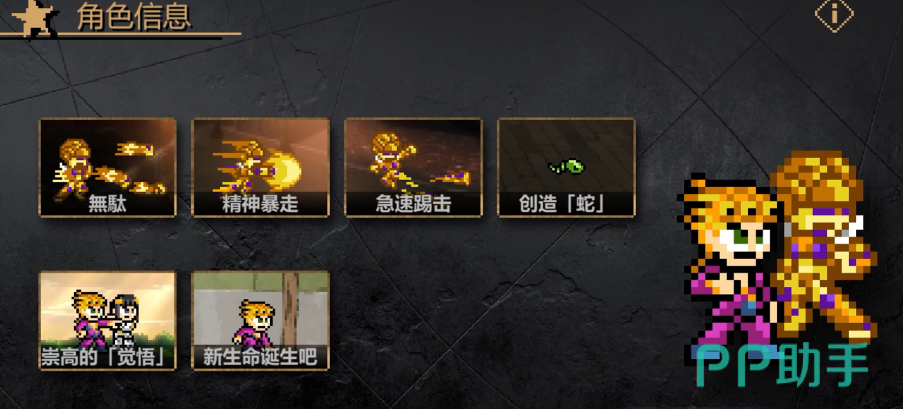以JOJO系列为背景的像素风格斗游戏,采用复古画面呈现原作中的替身能力与标志性动作。尽管美术风格简约,但角色技能设计极为细致,包含多段连击与组合技。支持双人协力通关,不同角色之间可形成技能联动,展现别具一格的像素格斗美学。