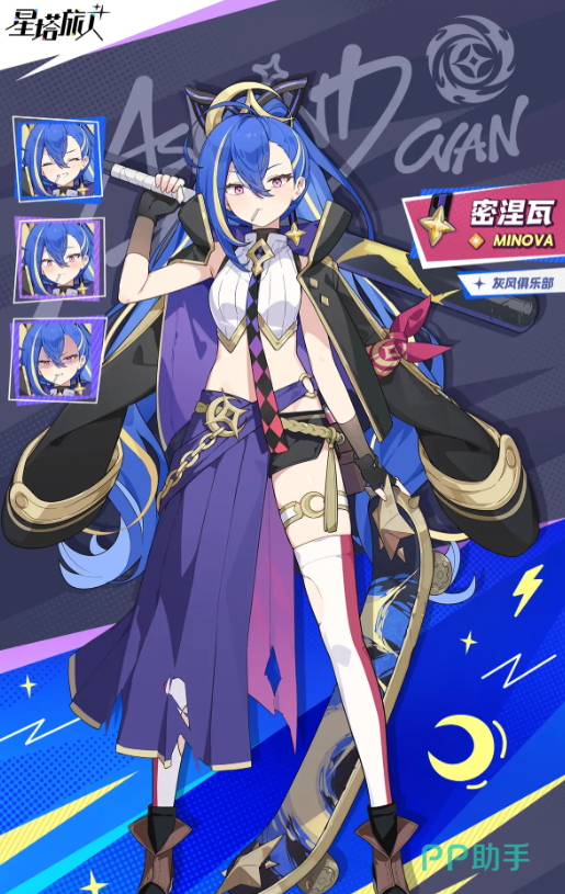 密涅瓦为光属性战士,日常形象看似叛逆少女,实则内心温柔,重视伙伴安全。她在带有特定环境标记的场景下能打出全队最高的印记伤害,并具备自我增益能力。援护技可释放星芒附着敌方单位,随后触发额外伤害。“连打”技能针对单一目标发动多次攻击,每次命中威力逐步上升,累积形成高额输出。“幻彩星”可在短时间内提升穿透力与攻击力,帮助快速突破防线完成击杀;“连弹”则对低血量敌人造成斩杀式打击,目标生命值越低,伤害越高。