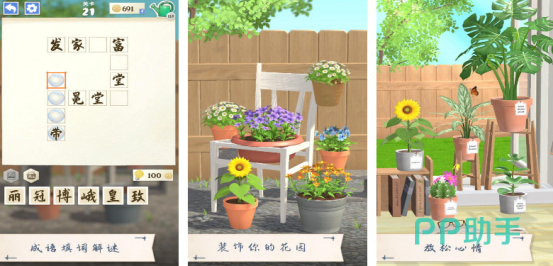 长期身处都市忙碌生活,难免向往宁静的乡村时光。本作以成语填空为核心玩法,通过纵横交错的成语连接形成逻辑网络,部分字词会在不同方向共用。每当成功补全一个成语,就能获得水滴奖励,用于浇灌虚拟花园中的花朵,逐步打造属于自己的诗意成语园地。