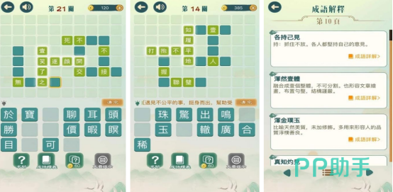 采用典雅的古风美术风格,全面覆盖成语学习要点,收录上万个常用成语。游戏支持成语接龙模式,横竖方向的方格中常缺失1~2个字,玩家需从给定的候选字中挑选正确汉字,组成完整且符合语义的成语,顺利通过当前关卡。整体难度由浅入深,层层递进。