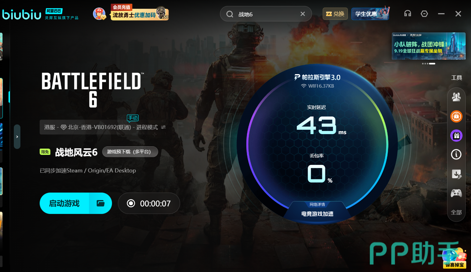 目前平台正推出多项福利活动,新用户注册即可领取24小时免费加速时长,输入口令【biubiu不掉线】还可额外兑换72小时使用权限,总计可达96小时。此外,为迎接新游上线,biu仔特别针对战地系列开启限时免加速服务,活动时间为10月1日0点至10月20日。在此期间积极使用服务,还可积累抽奖次数,免费抽取《战地风云6(魅影版)》。需注意的是,《战地风云6》将于10月10日23点正式上线,届时也将同步启动限免加速活动。
