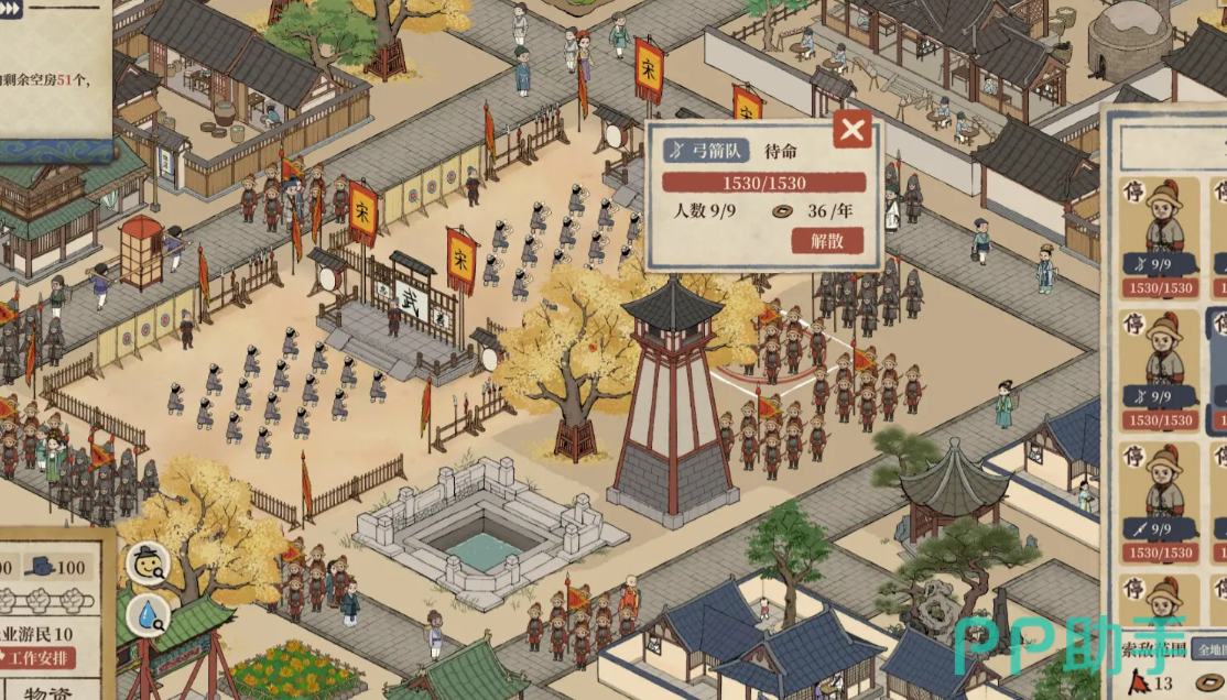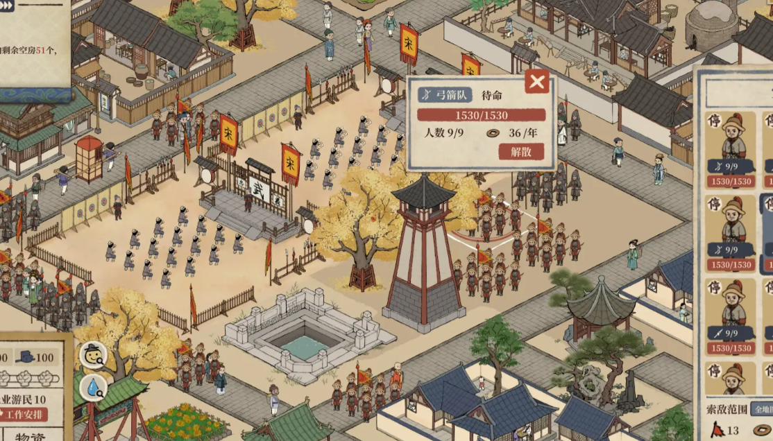 例如,玩家可以将水井,安置在民居的附近,从而增加公信度,同时,随着科技不断进展,玩家也需要提升百姓之间的文化水准,可以设置书院,以及道观佛寺等等。