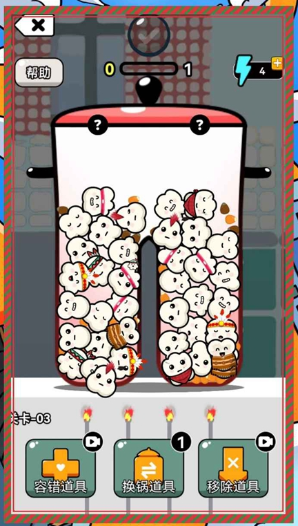 这是一款靠收拾东西来解压的游戏,大家可以把颜色一样的麻将或者爆米花挪到一块消掉,有些关卡还能整理物品,把同色的归好类,玩着玩着压力就散了。就算没网也不耽误,操作特别简单,还有不少不一样的互动玩法,玩起来很轻松。游戏里的顾客会看我们服务好不好,爆米花吃着香不香,然后给我们打分,只要完成一些指定的小任务,就能解锁新的爆米花口味。